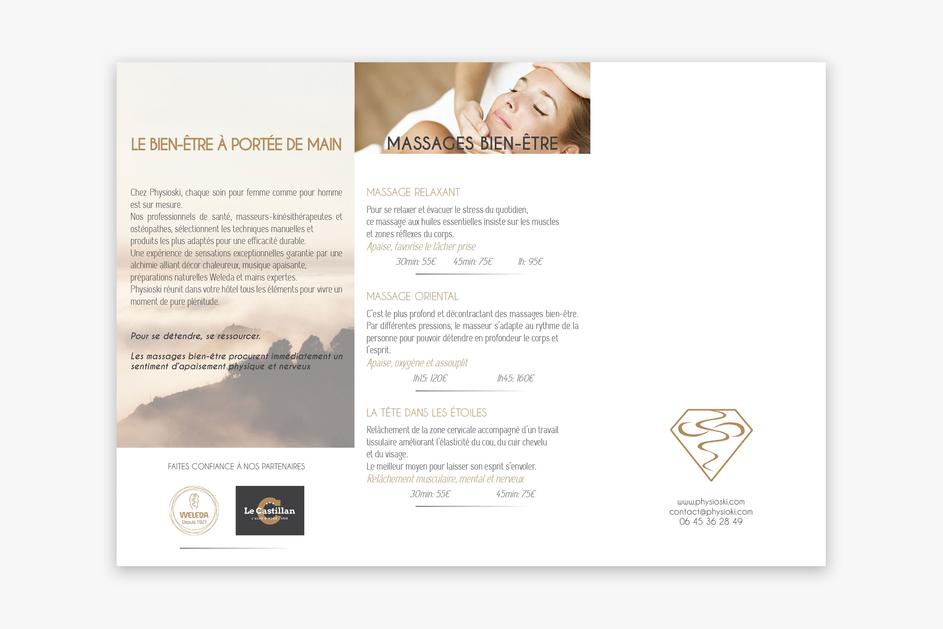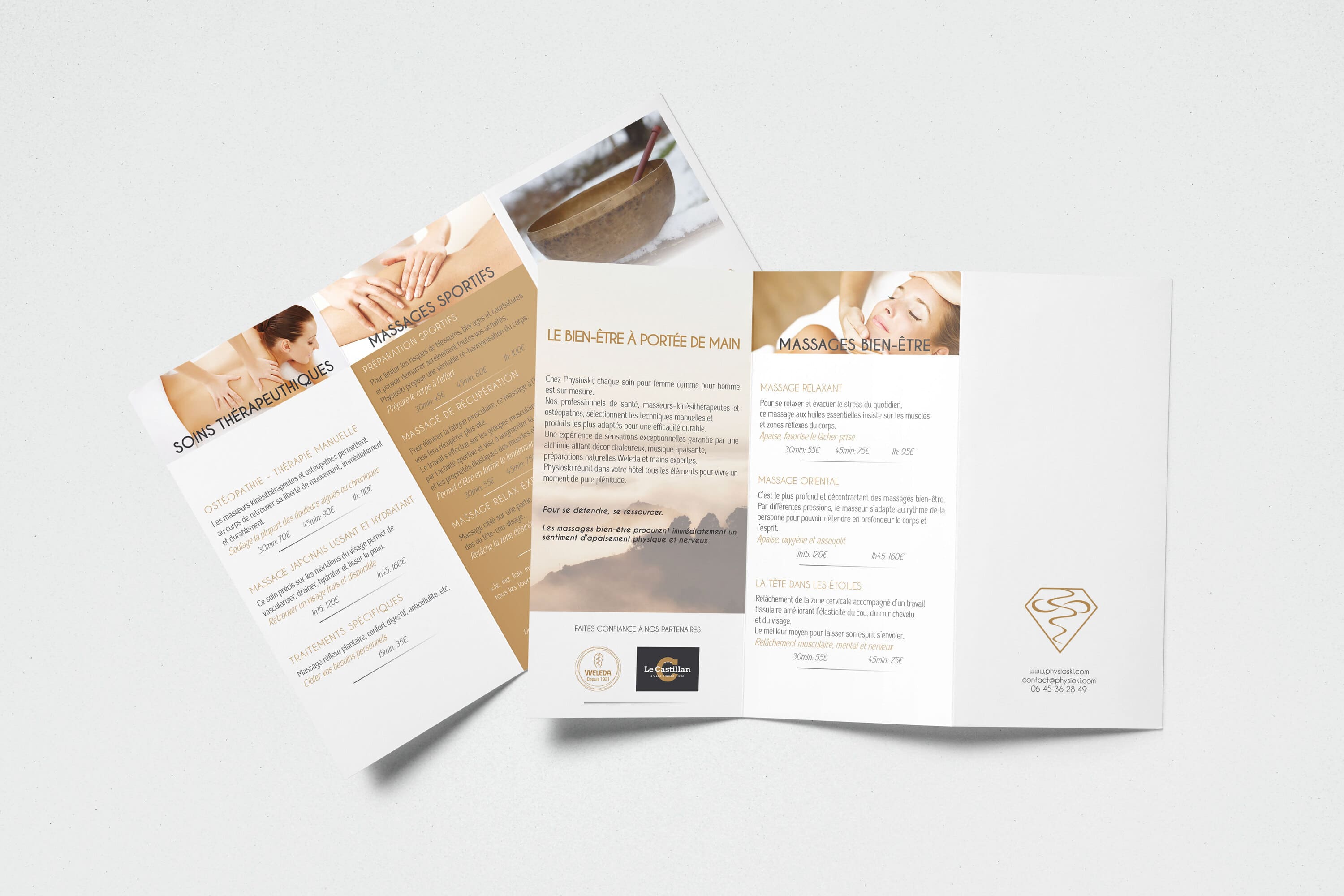 D'après la charte graphique existante, proposition d'une composition à trois volets présentant l'ensemble des prestations de service.