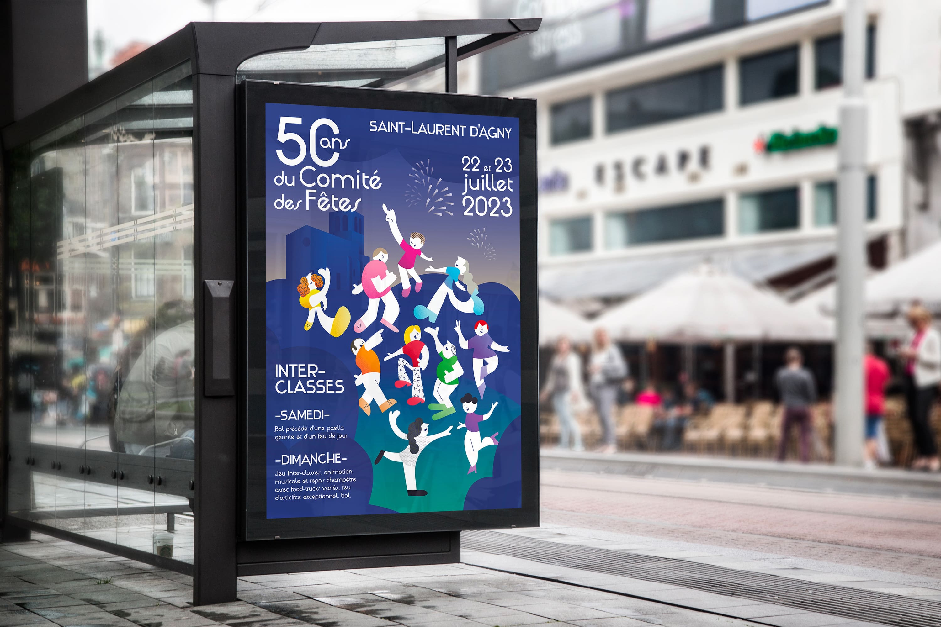 Proposition d'une composition tous publics au format A0 pour affichage dans les commerces et panneaux d'information.